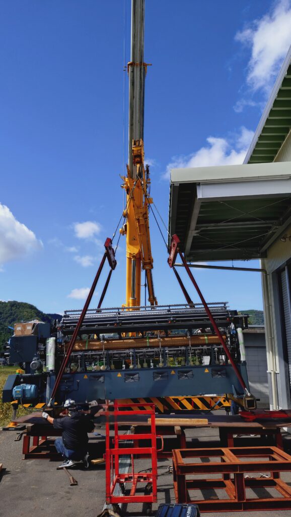 10月としては異例の、暑さを感じるほどの日差しの中、新型編機の搬入を行いました。