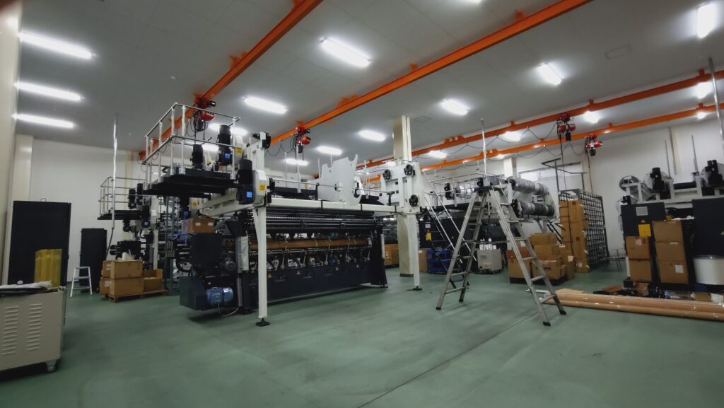 2021年秋に完成した新工場に、5台目となる編機を導入しました。これで旧工場と合わせて31台の編機を保有することとなりました。